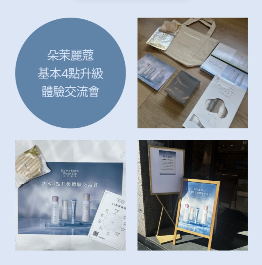 這一年在保養品上的花費變多了,因此首次收到了簡訊通知,得以參加朵茉麗蔻於台北舉辦的「基本4點升級體驗交流會」。這個活動在10/2開放預約,專屬於收到簡訊的朋友,我在10/10才收到通知,雖然一開始上網報名時無法預約,但還是開放候補,讓我倍感期待,最終簡訊通知成功預約,至少也算獲得了一日的額外體驗機會啦!