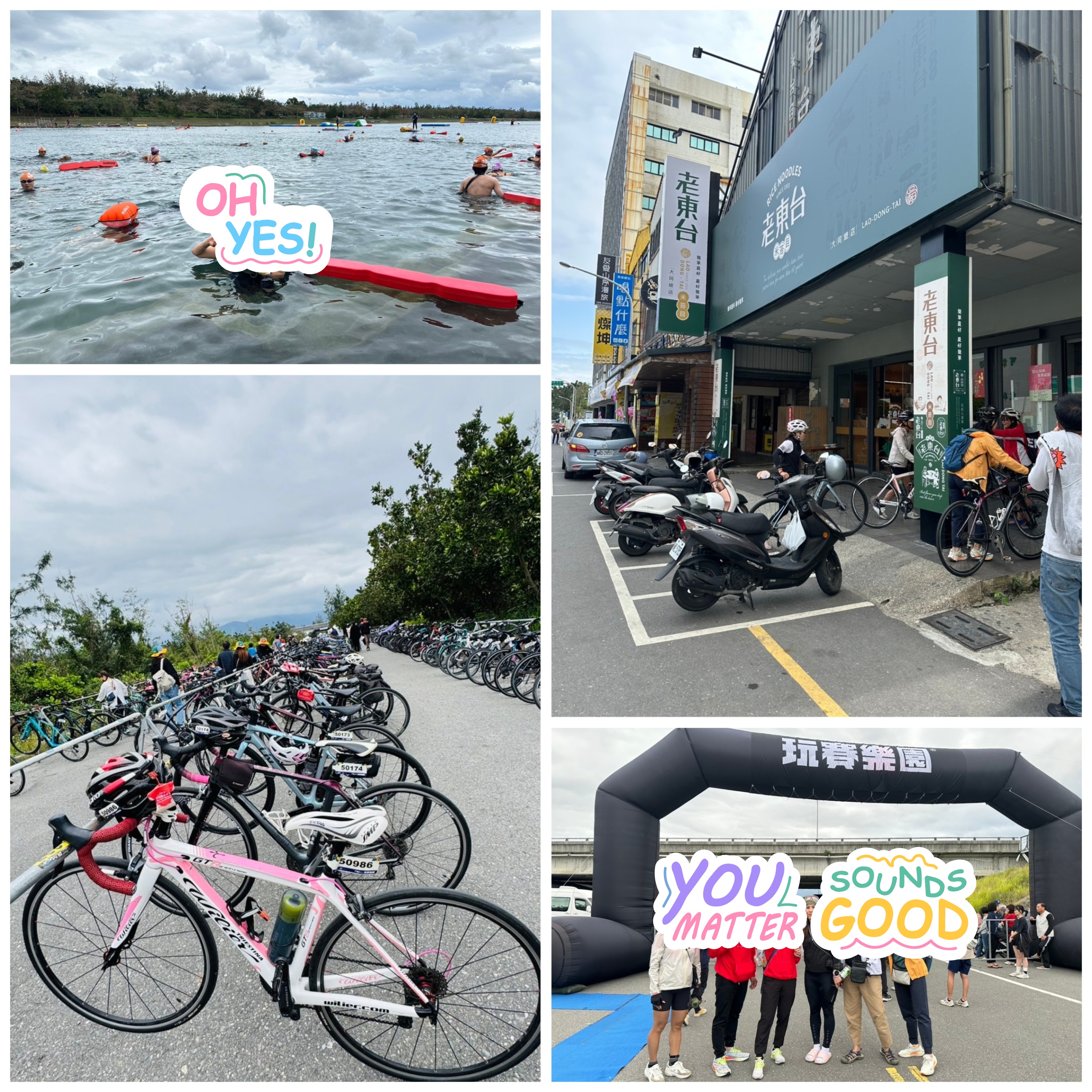 接著,我們前往 台東森林公園,準備報到交車,並在 活水湖 試游。這場三鐵活動是不關門賽事,現場氛圍輕鬆歡樂,讓人感受到運動的純粹樂趣。唯一的小缺憾是領取物資的動線規劃不太順暢,排隊費時,拿到物資時竟有些空虛感!
