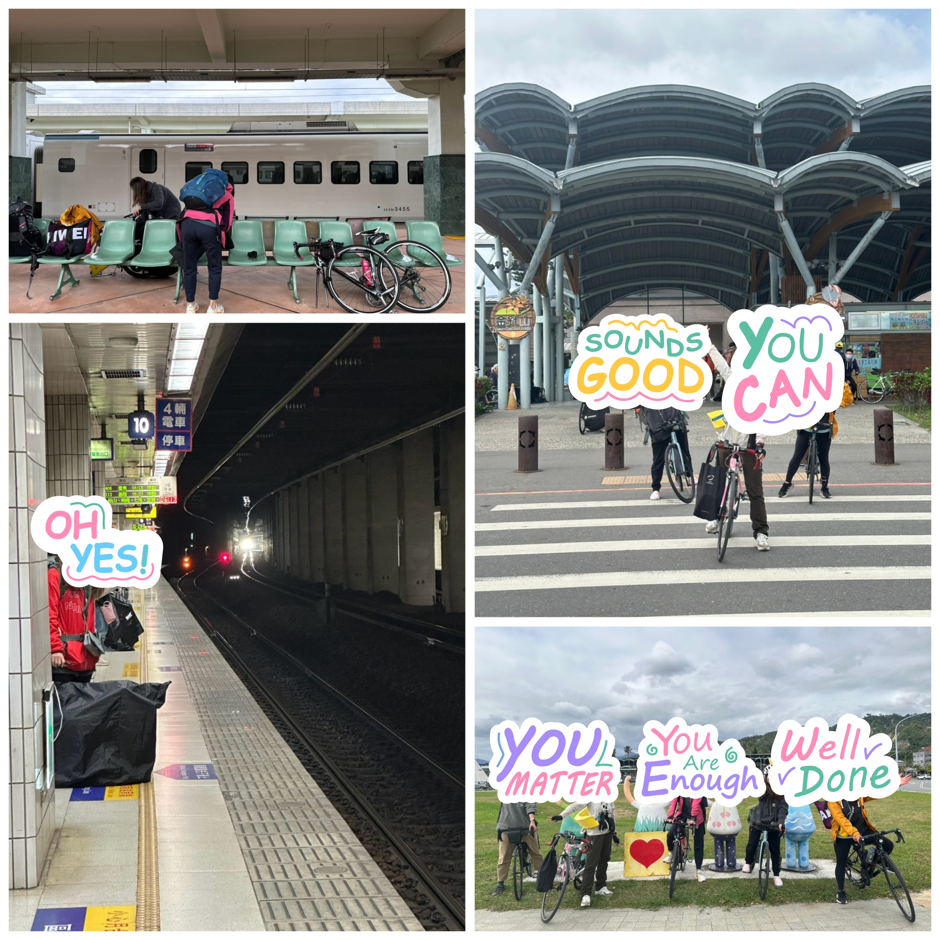 這次與女子軍團同行,幸運地由有力人士搶訂了火車票與住宿,省去不少麻煩!一早在火車站集合,搭上第一班車,因人潮不多,自行車順利找到擺放空間。不過,許久未搭火車,這趟到台東足足坐了五個小時才抵達。下車時,原以為先組裝自行車會方便進出站,幸好接車的友人及時提醒:「怎麼上車就要怎麼出站!」結果拆到一半又趕緊收回,鬧了一場烏龍!