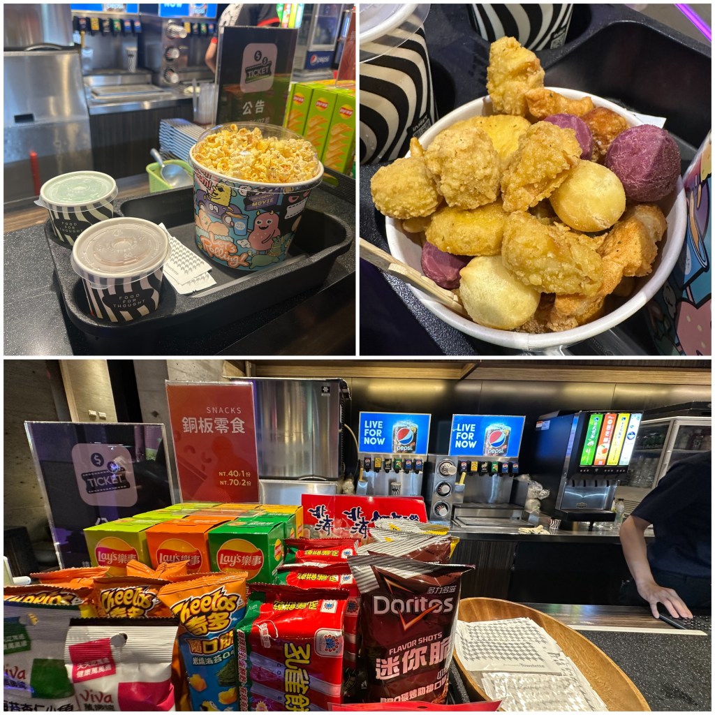看電影怎麼能不吃爆米花哩!!點心區不馬虎,鹹甜爆米花任你選搭配義式QQ蘇打,再加點了一份炸物拼盤,連嘴巴都參與這場任務!讓看電影變成一種享受~~~